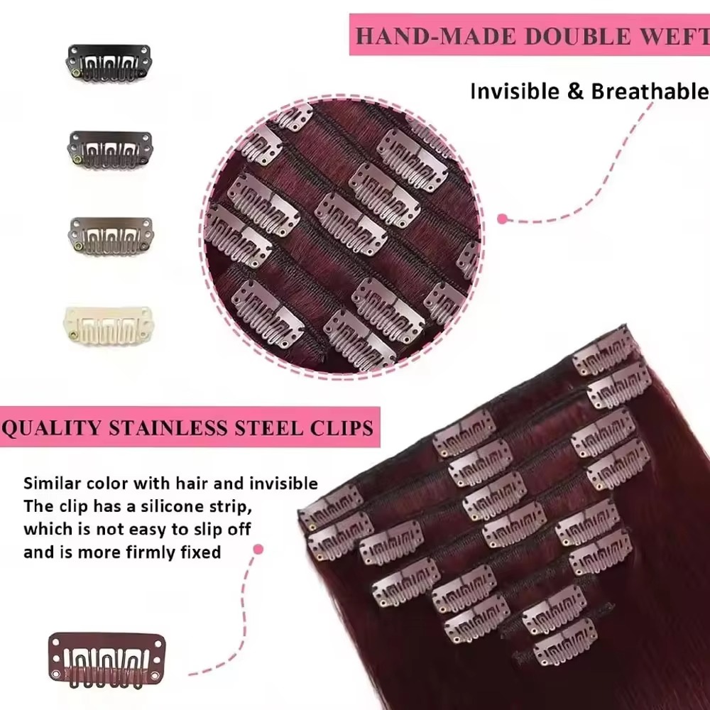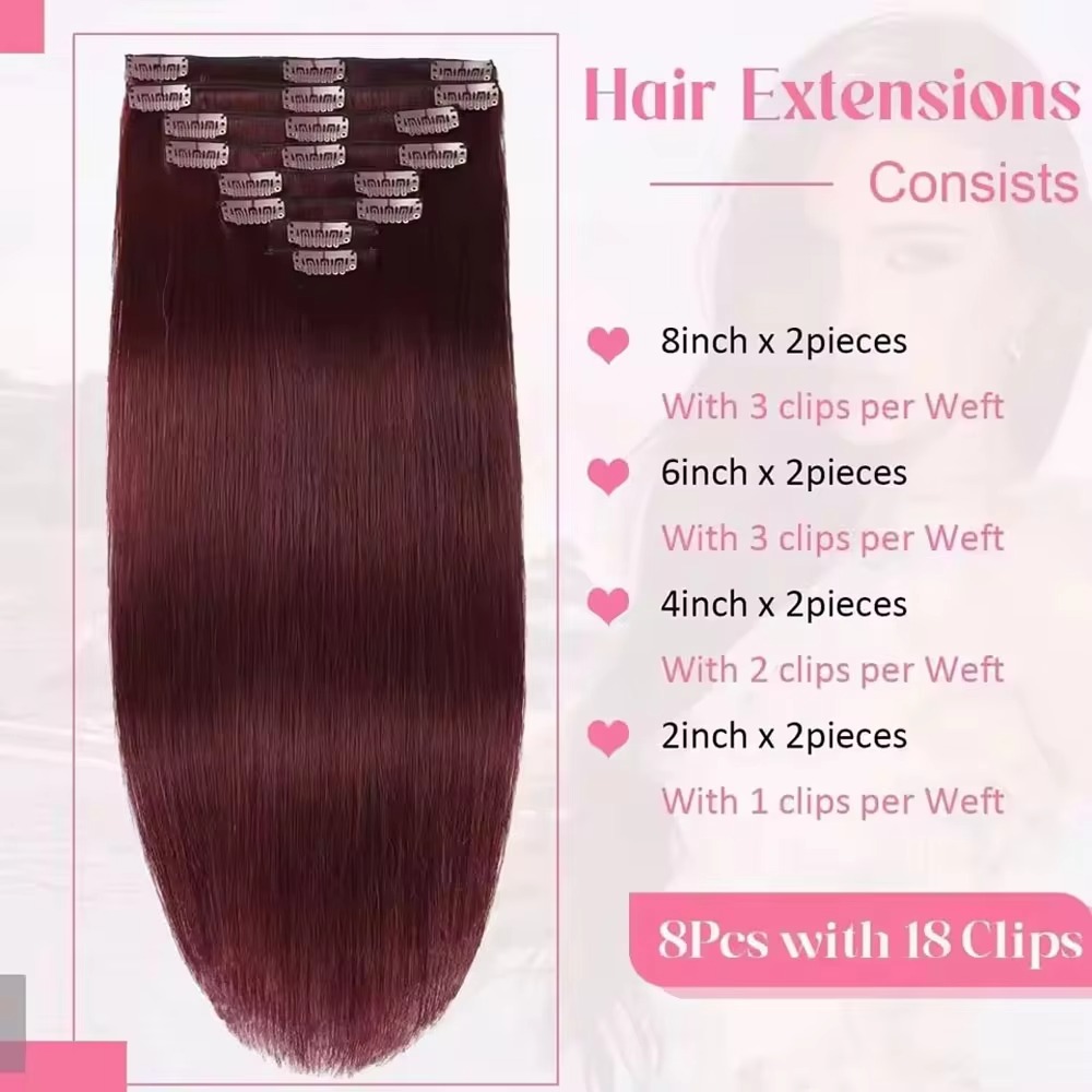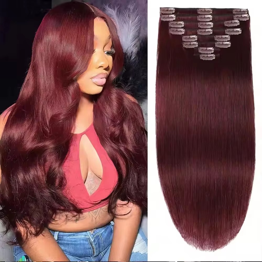 7 reviews for 99J Burgundy Straight Clip-In Hair Extensions, 100% Real Brazilian Human Hair, 8PCS, 100g