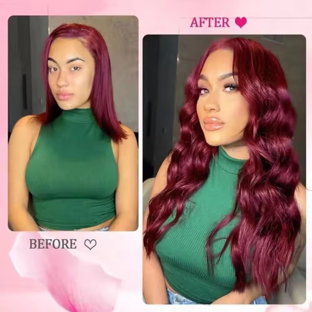 The quality of the human hair was obvious from the start — silky smooth and easy to manage. I enjoyed how natural the burgundy tone looked under different lighting.