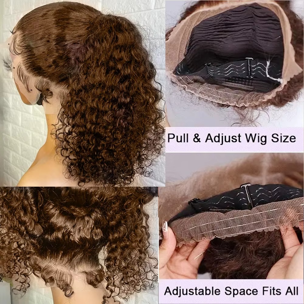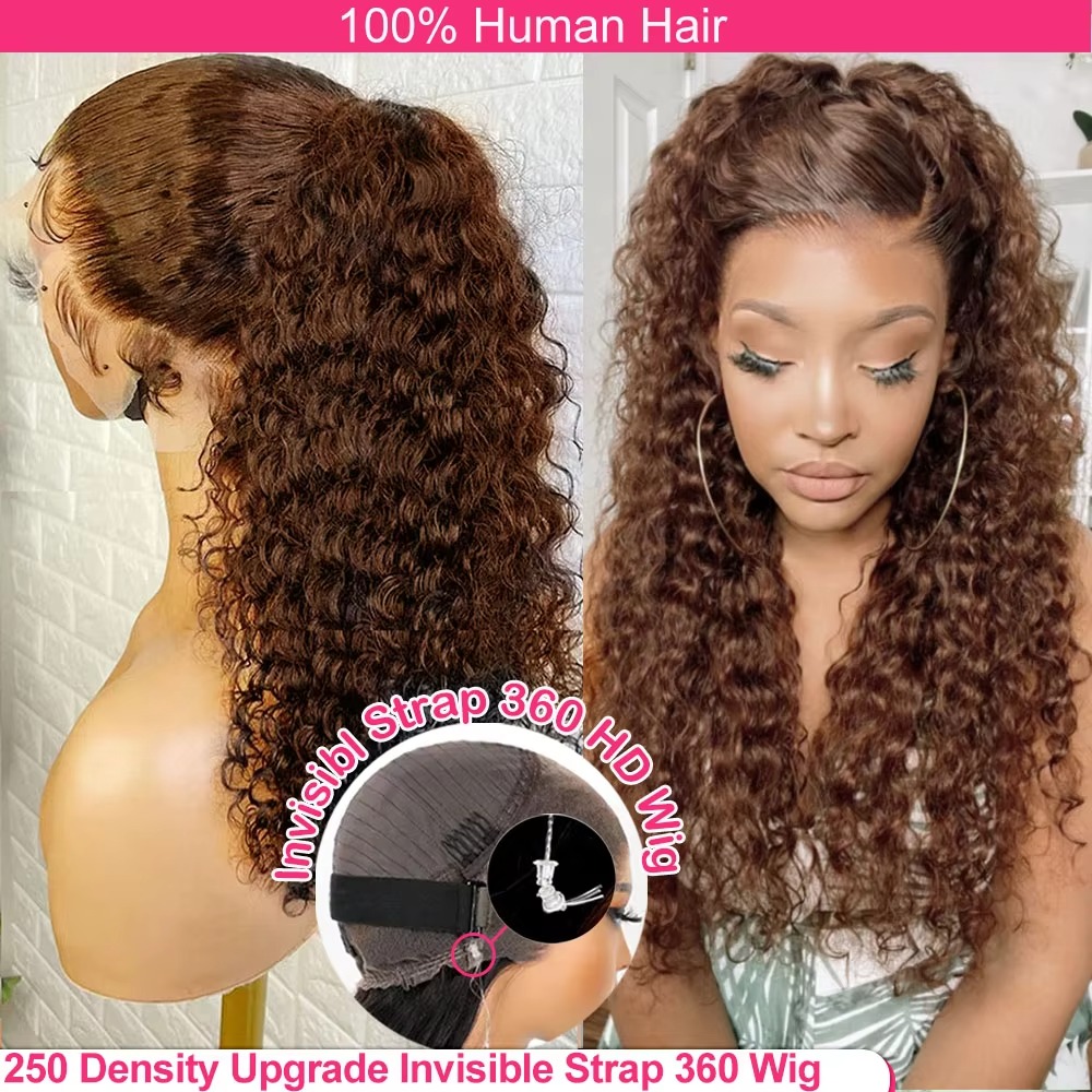 Upgrade your look with this Chocolate Brown Deep Wave Lace Front Human Hair Wig, featuring a soft water wave texture and a glueless lace frontal design for easy, secure wear. Made from 100% human hair, this wig delivers natural shine, bouncy curls, and long-lasting comfort—perfect for daily wear or special occasions.