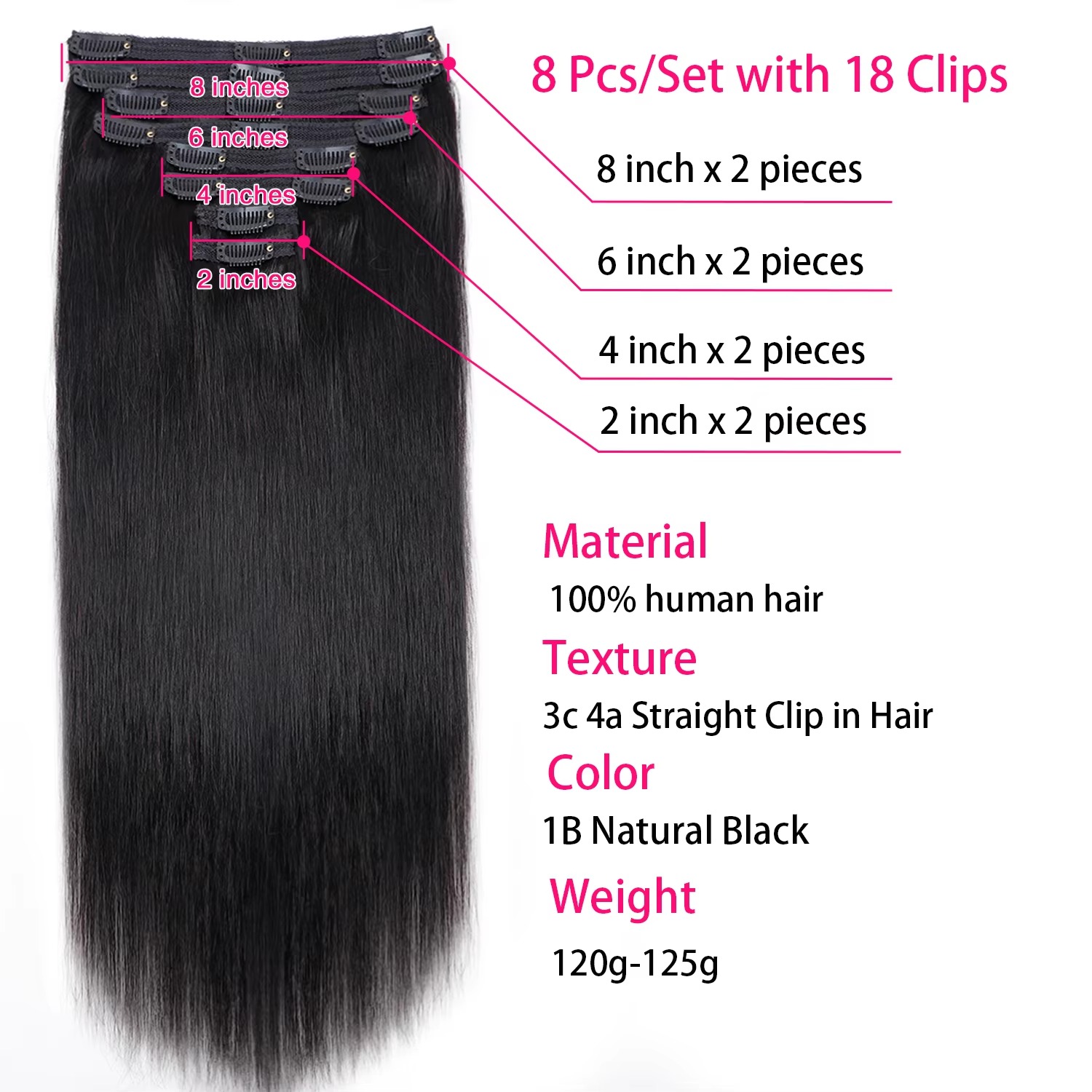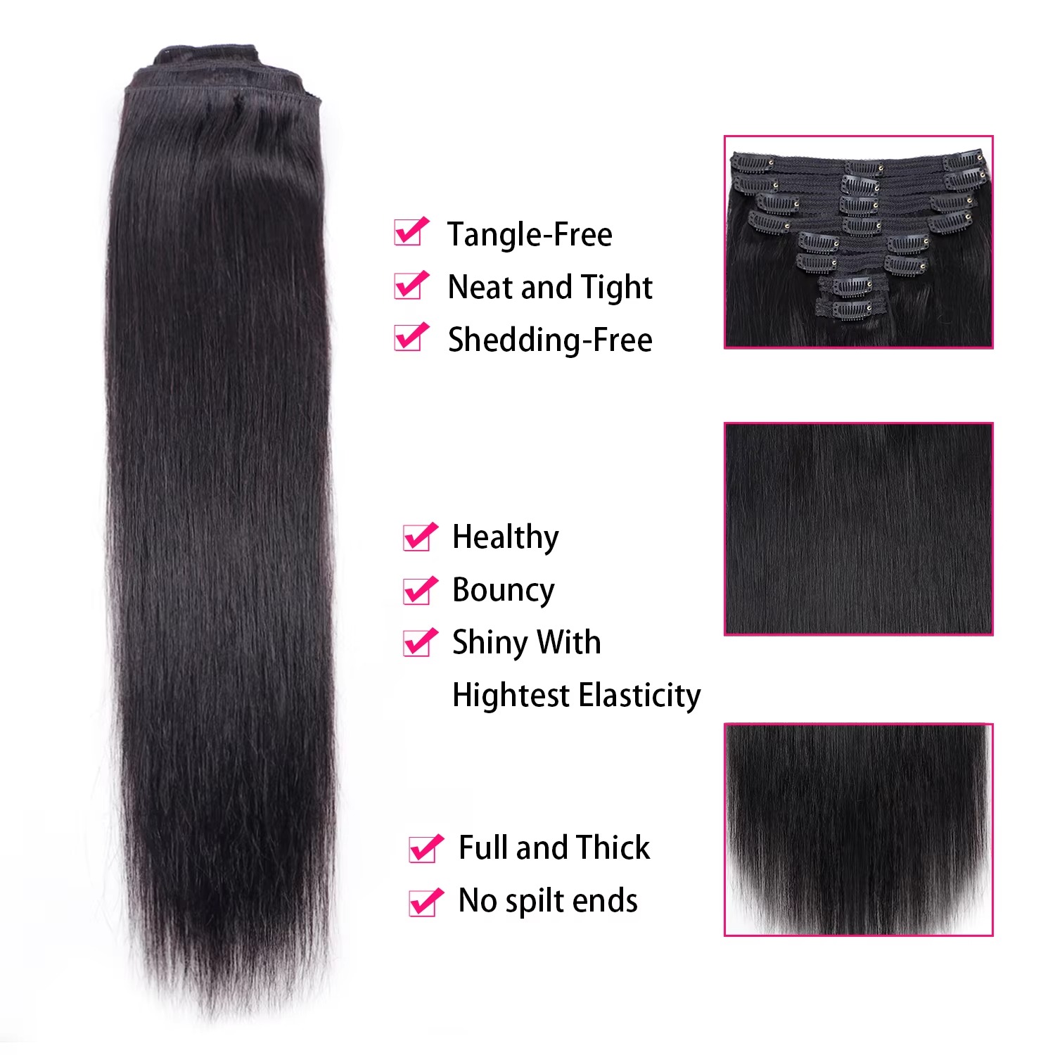 Upgrade your hair instantly with these 100% human hair clip-in extensions. Straight, natural-looking, and lightweight, this 120g, 8-piece set provides full head coverage for a flawless, salon-quality look at home. Easy to clip on and remove, perfect for adding length, volume, and shine in minutes.
