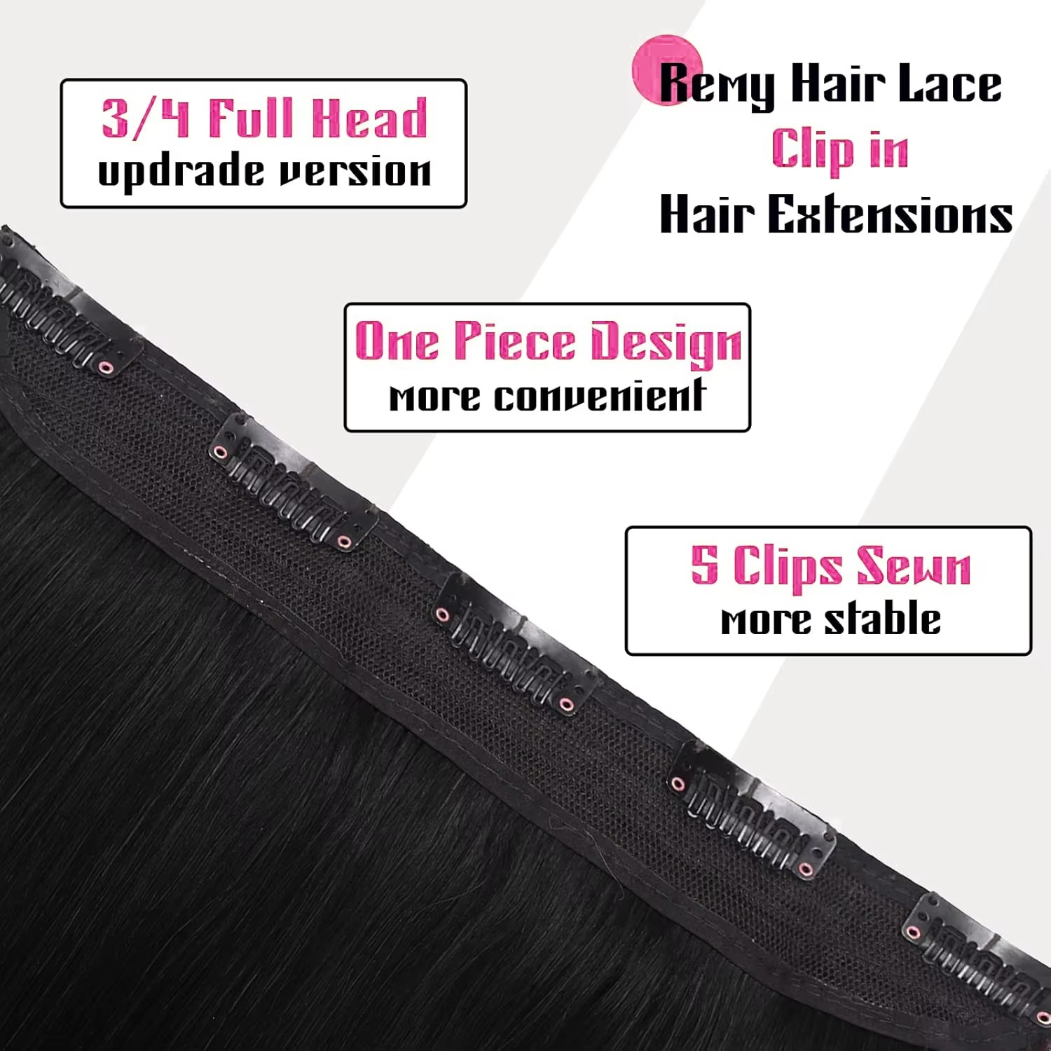 Achieve instant length and volume with our Straight One-Piece Clip-In Hair Extensions. Designed with 5 secure clips, this 3/4 full head extension blends seamlessly with natural hair for a smooth, straight finish. Perfect for everyday wear or special occasions, it delivers a natural look without damage or commitment.